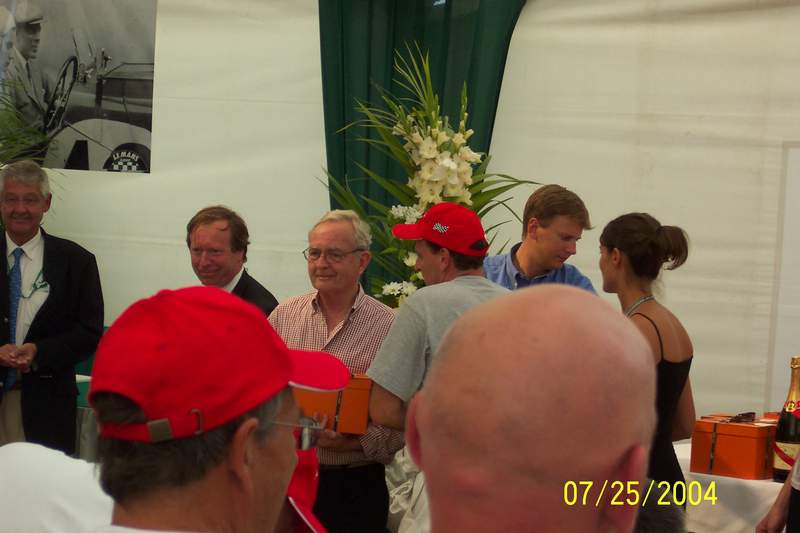 I've got to give Hank at GT Racing all the credit for the front clip, hood scoop and flares. He also supplied the f/g for the 911 RSR we took to the 2004 LeMans Classic. The attached pictures are of the car at LeMans, just after we took a 3rd place trophy which was presented by Phil Hill. The 911 picture is on the back cover of GT Racing latest catalogue and the other is with Mr. Hill.