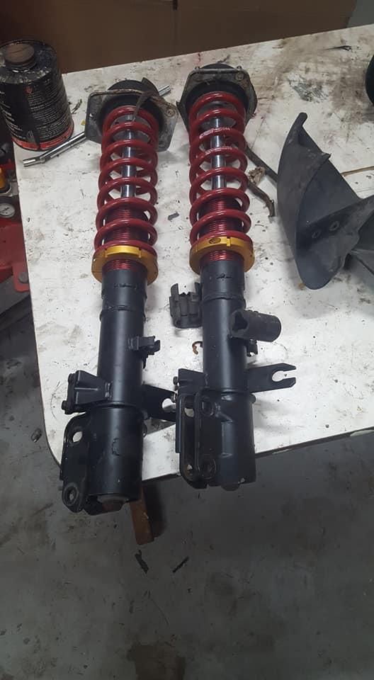 Ground control height adjustable sleeve collars etc. The owner welded a higher perched instead of normal height. To guarantee stock height and such. 10" x 250lb eibach springs. Fitted with 968 top mounts. Possibility of swapping for LR camber plates for extra cash. Located in Ile perrot. Quebec. Canada. Inter national shipping available. looking for 700USD + S&H + PP fees. ![]() ![]() ![]() ![]() ![]()