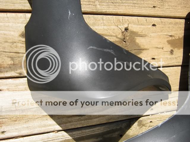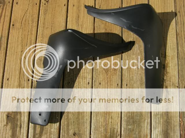 You can have either set for $30 plus shipping.Set #1 is in great shape besides some silver paint that got on them. ![]() ![]() ![]() Set #2 has one small hole on the bottom edge that would be in front of the bumper. It also has a touch of overspray on the top edge of one of them, and some runs where perhaps someone tried to paint them using rubber bumper paint. ![]() ![]() ![]()