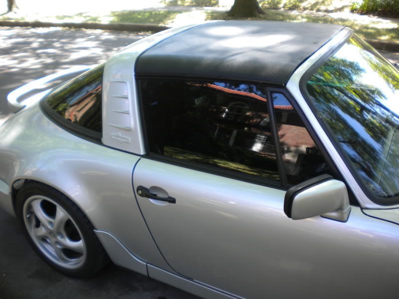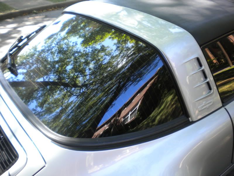 I think the rectangular screens would be nice and practical! When I was browsing ebay I found one example. It indeed looks cool on a white car but my car wouldn't look the same if tint is applied. It will take some of the openness out of the car. My car is Amazon green + black Targa top + tinted targa canopy = heaviness! Anybody have a dark colored targa with a tinted canopy? |
