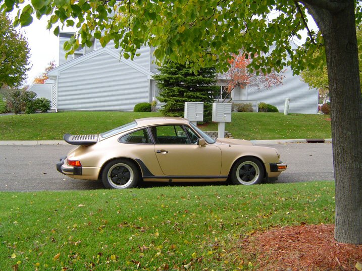 All work was done by professional mechanics or under the guidance of professional Porsche tuners. Here is some info about it: 1. Gold exterior paint is in generally good shape, no rust that I can see. It is a 10 foot car. Most nicks and scratches in the paint have been touched up. The passenger door was keyed and has been touched up. Front clip under the bumper is nicked up a bit. 2. Brown interior Seats are in decent shape no tears, but the bolsters have some wear. Seats are comfortable though. For most of the past 10 years they have had Wet Okole seat covers on them. 3. 7 front and 8 rear Fuchs alloys. I have both the magnesium and steel lugs. All wheels are in good shape, the 8 rears are in excellent shape. 4. The original Blaupunkt stereo was replaced with a Sony. There is a 100 Watt amplifier under the passenger seat, new speakers in the doors and rear. 5. The engine is a 3.2 Carrera unit rebuilt and installed in the car by Ross Motorsport in Indiana. Engine has approximately 20K miles since rebuild. 6. Engine has backdated heat, SSI heat exchangers, new heater control valves, and new heater control cables. 7. Currently installed are Rebel Racing SS motor and transmission mounts. I still have the rubber sport mounts (4) for the car. 8. Muffler is a 2 inlet 1 outlet sport muffler form a 74 Carrera. Has the catalyst deleted. 9. Steve Wong chip for SSI and sport exhaust. I have the original chip as well. 10. Engine has a new Spec flywheel, new Sachs power clutch and the original aluminum pressure plate. 11. Transmission was rebuilt with new gears by Johnson Autosport. Will update with gear ratios but the back stretch at Brainerd can all be handled in third gear. 1st and 2nd gear synchros were rebuilt two years ago. 12. Wevo 915 shifter in black finish, also has a Wevo precision shift joint. New shifter bushings. 13. Suspension has been completely rebuilt with elephant racing components: a. 22mm front and 29mm rear hollow torsion bars b. Polybronze bushings front and rear. c. Low friction control arm mounts d. Monoball front and rear cartridges for strut and control arm mounting. e. The Bilstein sport shocks and struts were custom valved by Elephant Racing to match the new torsion bars. f. Replaced the ball joints. 14. Front suspension control arms were powder coated silver. 15. Rennline triangulated front strut tower brace. 16. Sway bars from an 86 Carrera, new sway bar drop links. 17. Turbo tie rods installed. 18. Bump steer kit installed spacers for the steering rack to raise it up. 19. Front and rear wheel bearings were recently replaced. 20. All four CV joints were replaced on the drive shafts. 21. Replaced the fuel pump and filter. 22. The original trombone oil cooler in the front passenger wheel well has been replaced with a wide mouth Carrera oil cooler. Oil temps in the summer at the track dont go above 180 degrees. 23. All four of the SC calipers have been rebuilt. New rotors Power Slot Cryo treated rotors. I use the OEM compound brake pads as they are easy on the rotors. 24. Emergency brakes shoes and cables replaced. 25. Magnecor 8.5mm red ignition wire set. 26. Denso Iridium spark plugs. 27. Momo Prototipo steering wheel. 28. New heater fan and control box. 29. New black door pockets. 30. New front cockpit carpets, Rennline track mat. 31. New front trunk carpets german charcoal. 32. The A/C was deleted by the previous owner. I kept the blower in the smugglers box as it does provide some relatively colder air into the cockpit. Any other questions or pictures please let me know. I have some more detailed pictures but due to the size limit I'm putting the basic ones up here. Thanks ![]()