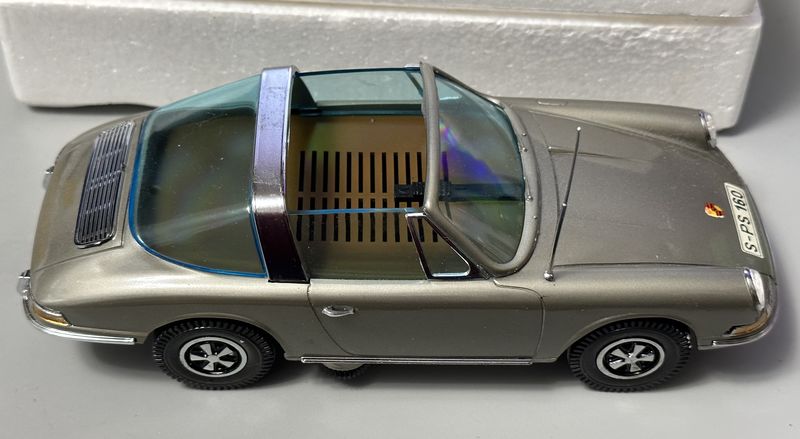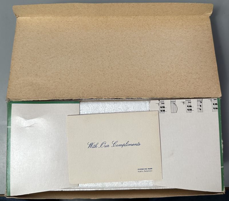 These were promotional radios that Porsche and Sonauto in Paris commissioned in late sixties. New in box and includes the original fender antenna. Over the years every single one I've seen is missing them. Rare Silver version. Includes blank gift card from Porsche. Fortunately the battery was never installed so it never corroded everything as it aged.(They were shipped in a separate compartment in the top of the foam packing.) Tested radio and works fine. Has LW and AM bands. $911 ![]() ![]() ![]() ![]() ![]()