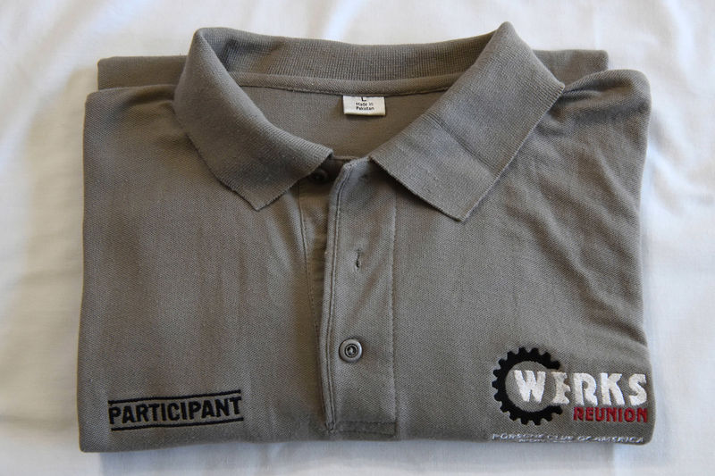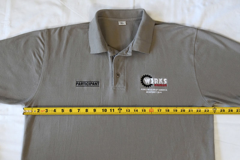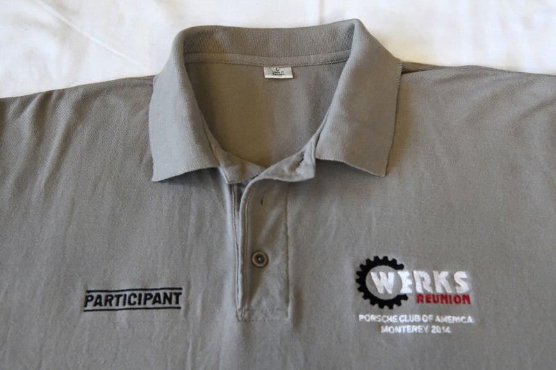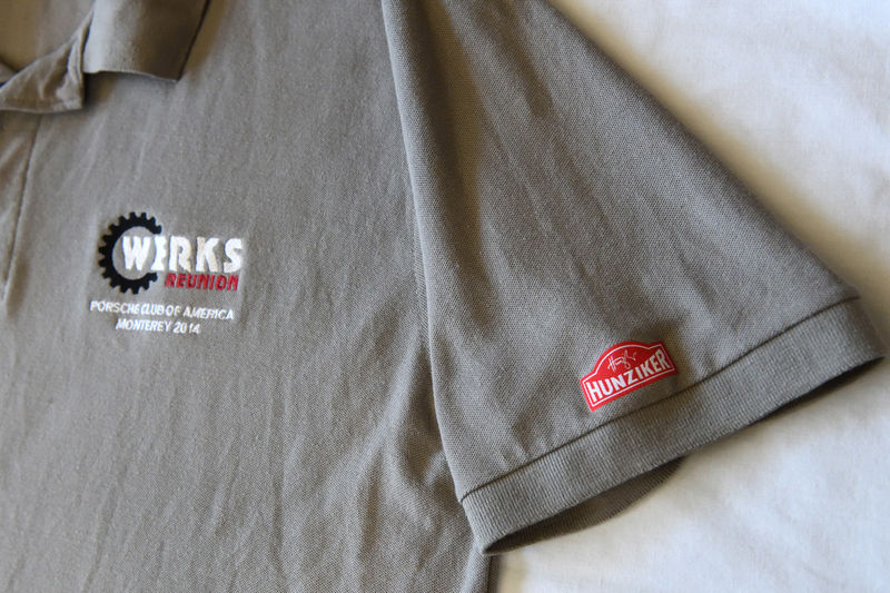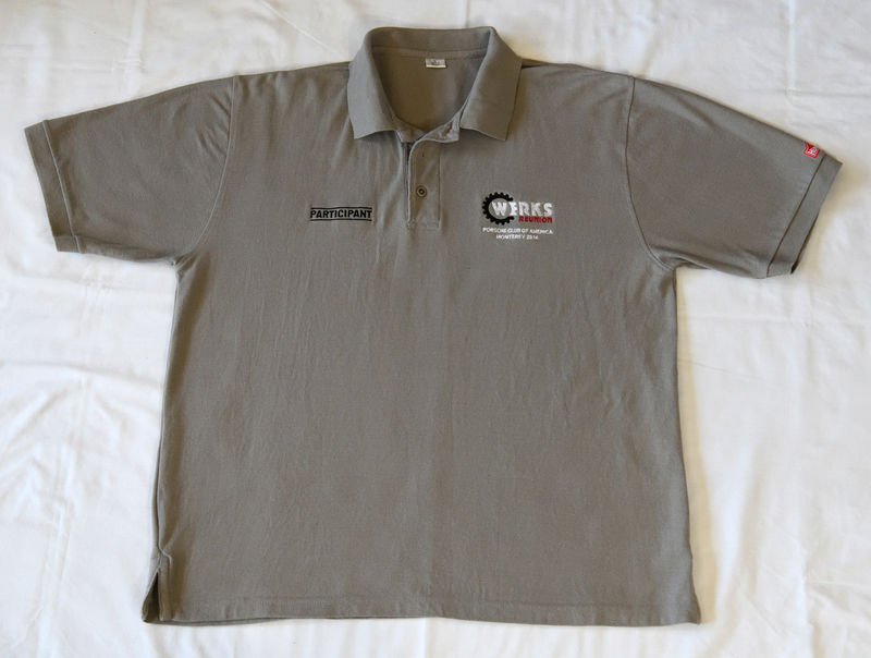 A gently PRE-OWNED Mens Large Event Polo Shirt in Grey / Taupe color from the 2014 Porsche Werks Reunion held at the Carmel Valley golf course near Monterey California. Asking $45 plus shipping from OH.