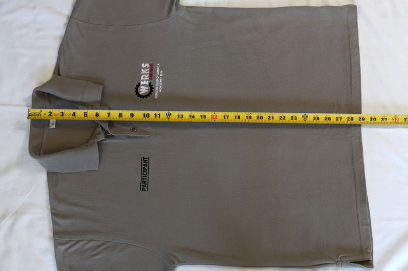 I obtained this shirt from the event and wore it only a few times. It has sat in the closet since. Material is 65% polyester and 35% cotton. The shirt is in very good condition with NO snags, tears, or stains. Please measure your favorite polo shirt to compare dimensions as shown in the photos. Item is washed and clean - and maybe could use ironing. ![]() ![]() ![]() ![]() ![]() ![]() ![]()