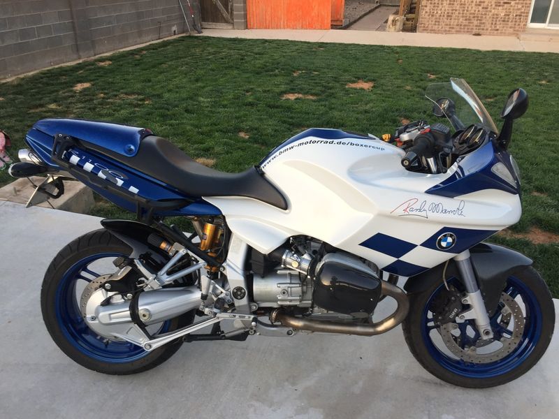 For sale 2003 R1100S BCR number 150 / 200. It has 12000 miles but I will keep riding it till it sells so that will change. All service has been done on time however it was parked thanks to a few deployments. Ohlins Suspension front and rear, a center stand has been added, and Remus Exhaust from the stock BMW head pipe. Asking $5000. Also looking for a Moto Guzzi 1100 Sport 1997 injected would be ideal but would consider carb model.